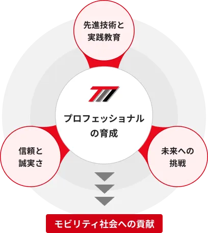 次世代のモビリティ社会を担う、常に前向きな考え方で進んでいく姿勢を育みます。